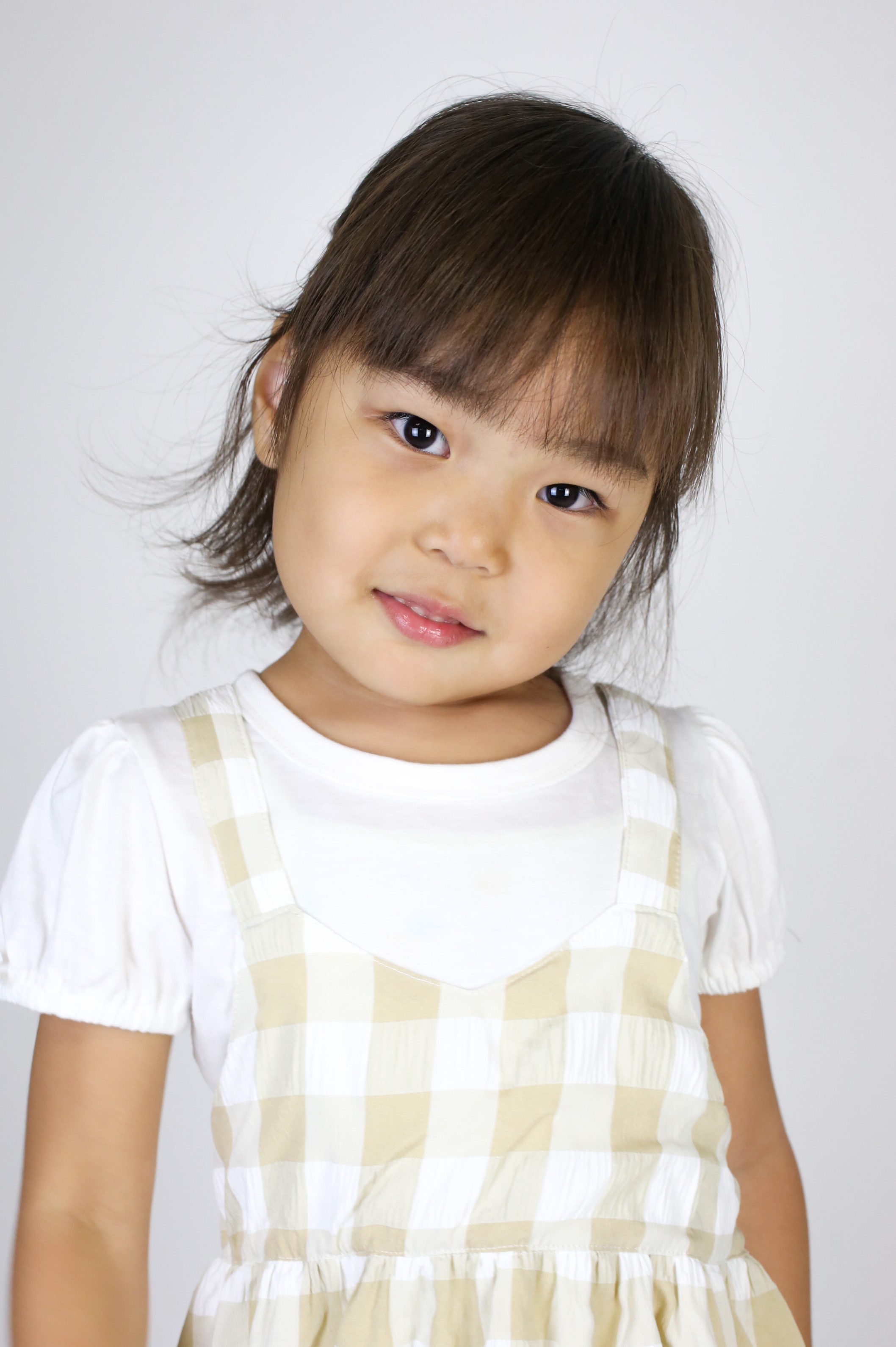 クールな一面とおちゃめな一面を持つ女の子です。音楽に合わせて自己流の振り付けで踊ったり、好きなプリンセスのコスチュームを着てお姫さま気分でなりきることも大好きです。ナチュラルな栗毛、しっかりした太い眉がチャームポイントです。