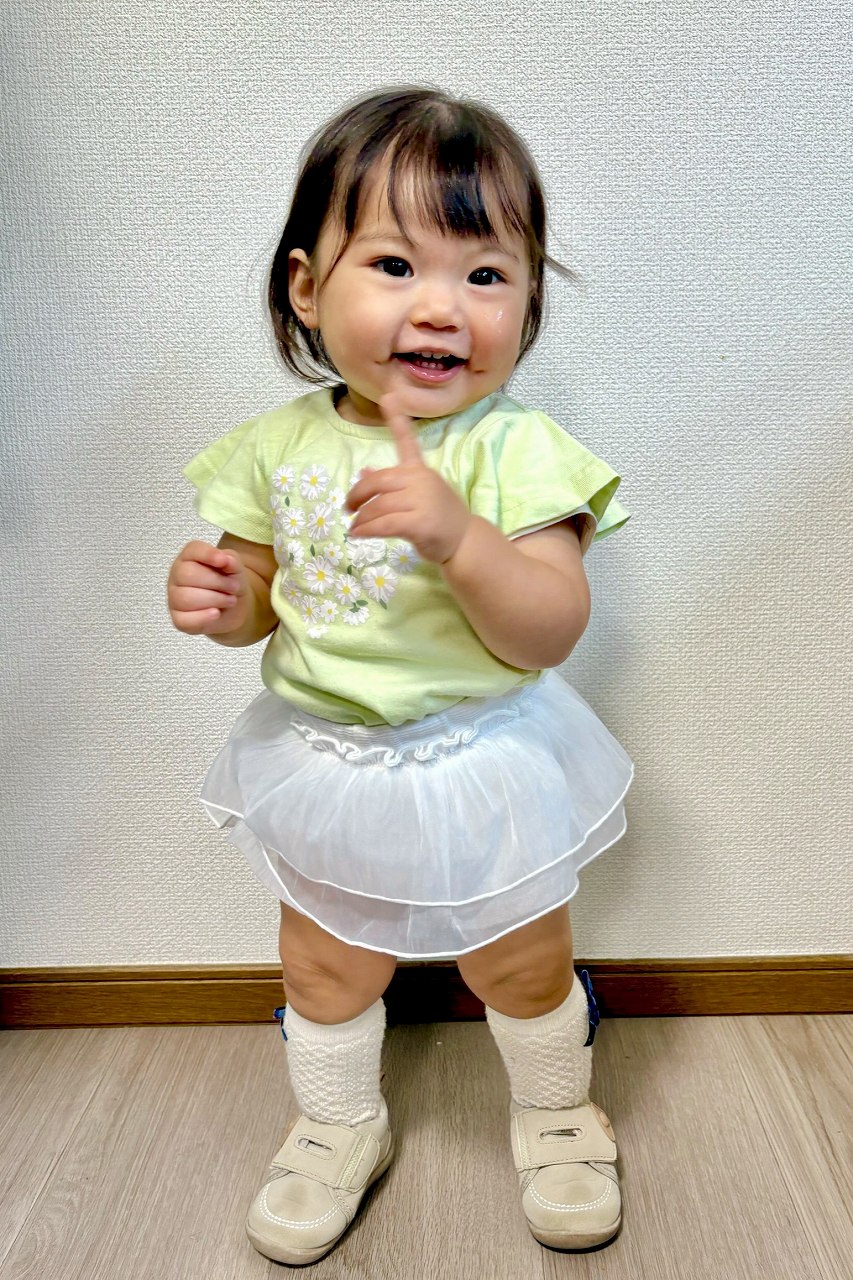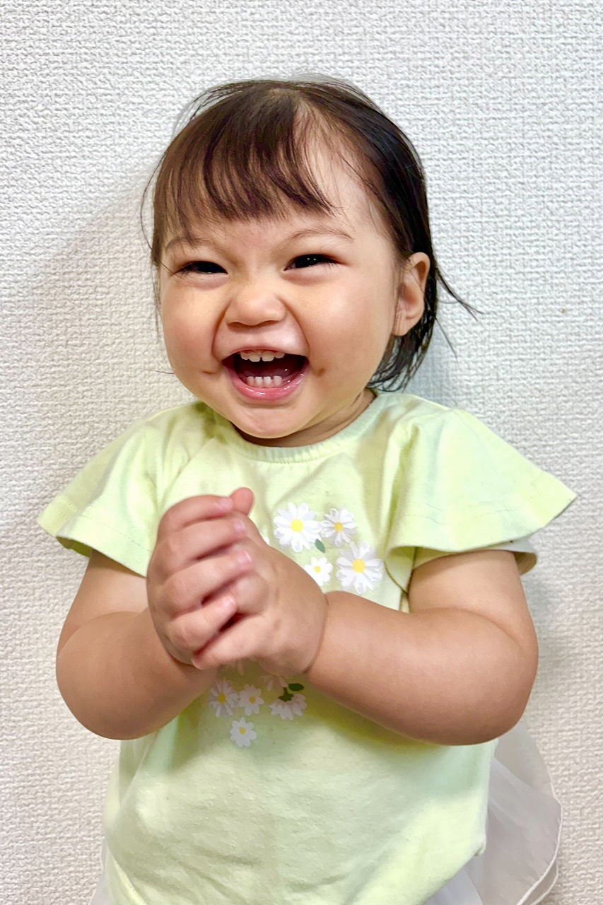 ぱっちりとした丸い目が印象的な女の子です。歌や音楽が大好きで、リズムにのって体を動かすのが得意です。周りの人の仕草を真似することも上手で、表現力の豊かさが魅力のひとつ。笑ったときに浮かぶえくぼがチャームポイントです。
